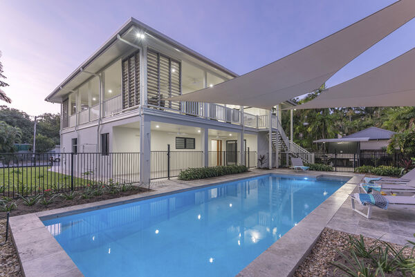 Papaya is a contemporary Queenslander ideally positioned on a quiet street, only 50 meters from the famous Four Mile Beach. Elevated to take advantage of natural light and cooling ocean breezes, this three bedroom home offers a stylish, private base for families and groups of friends, where open plan living flows effortlessly from the upstairs chef's kitchen out to the covered outdoor entertaining area and private magnesium heated pool below.