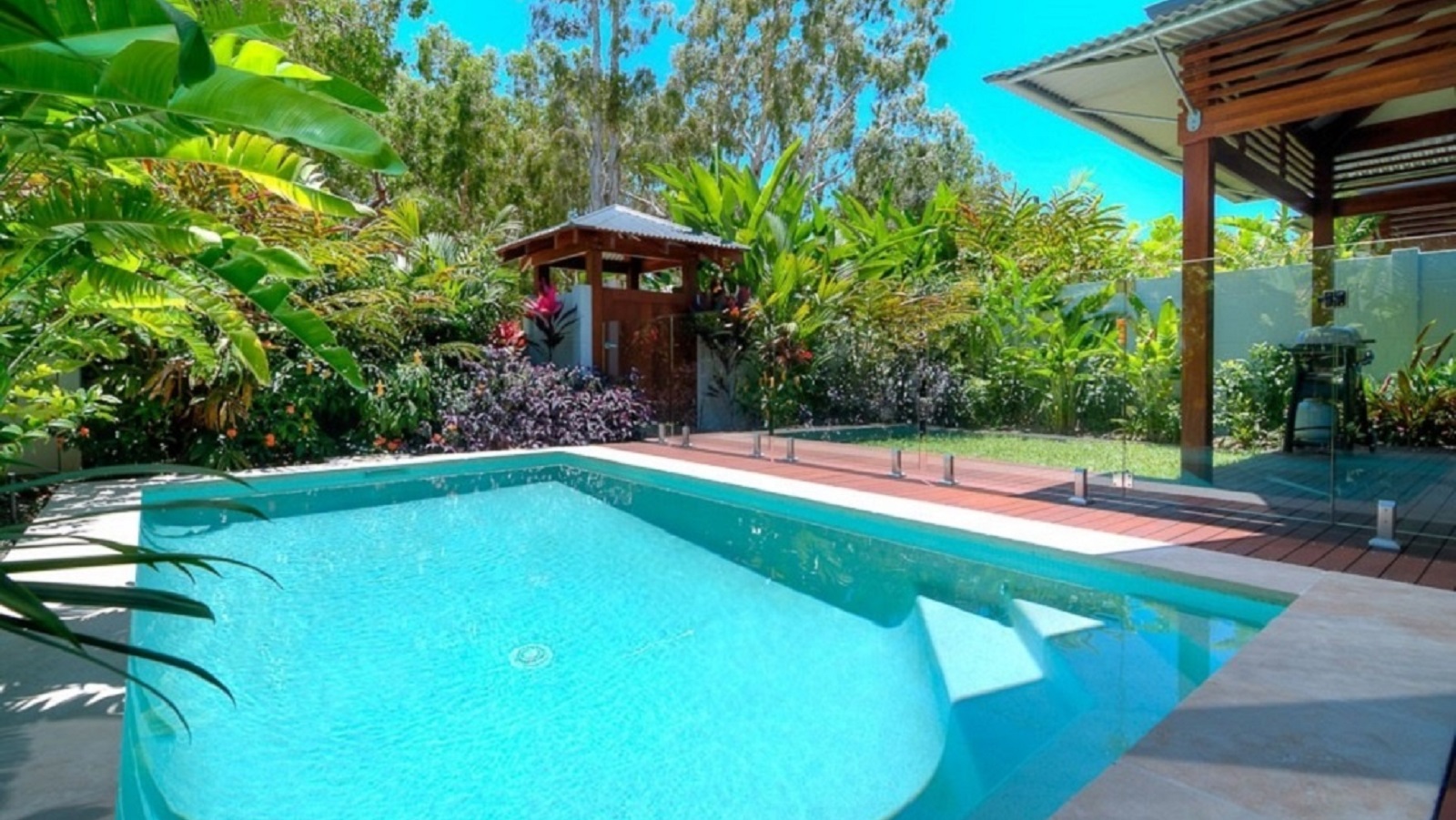 Designed for indoor/outdoor living in the tropics this open plan, single story home has a wall of glass sliding doors introducing the secluded outdoor haven and lush tropical gardens into the modern, open plan living area and kitchen. Fully equipped with high quality appliances and comfortable furnishings you will feel right at home and relaxed as soon as you walk in the door. Enjoy an evening BBQ under the outdoor Cabana or sit back, relax and enjoy your favourite book whilst the children enjoy the swimming pool, which is also heated during the winter months.