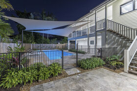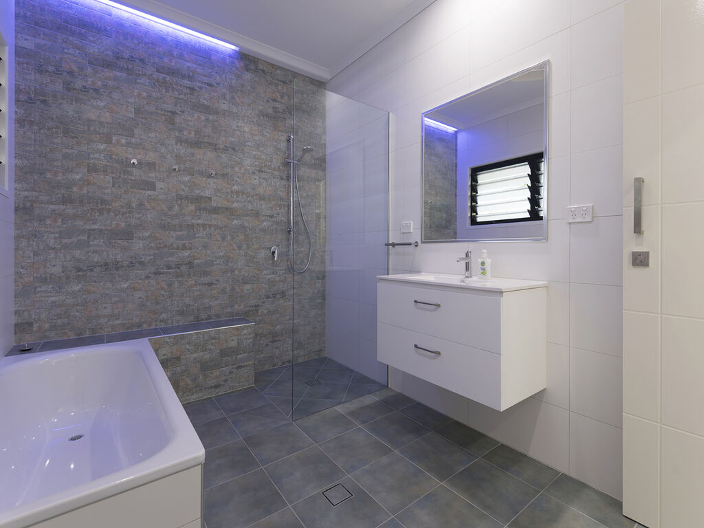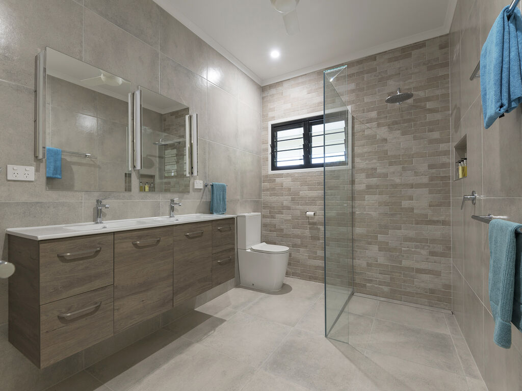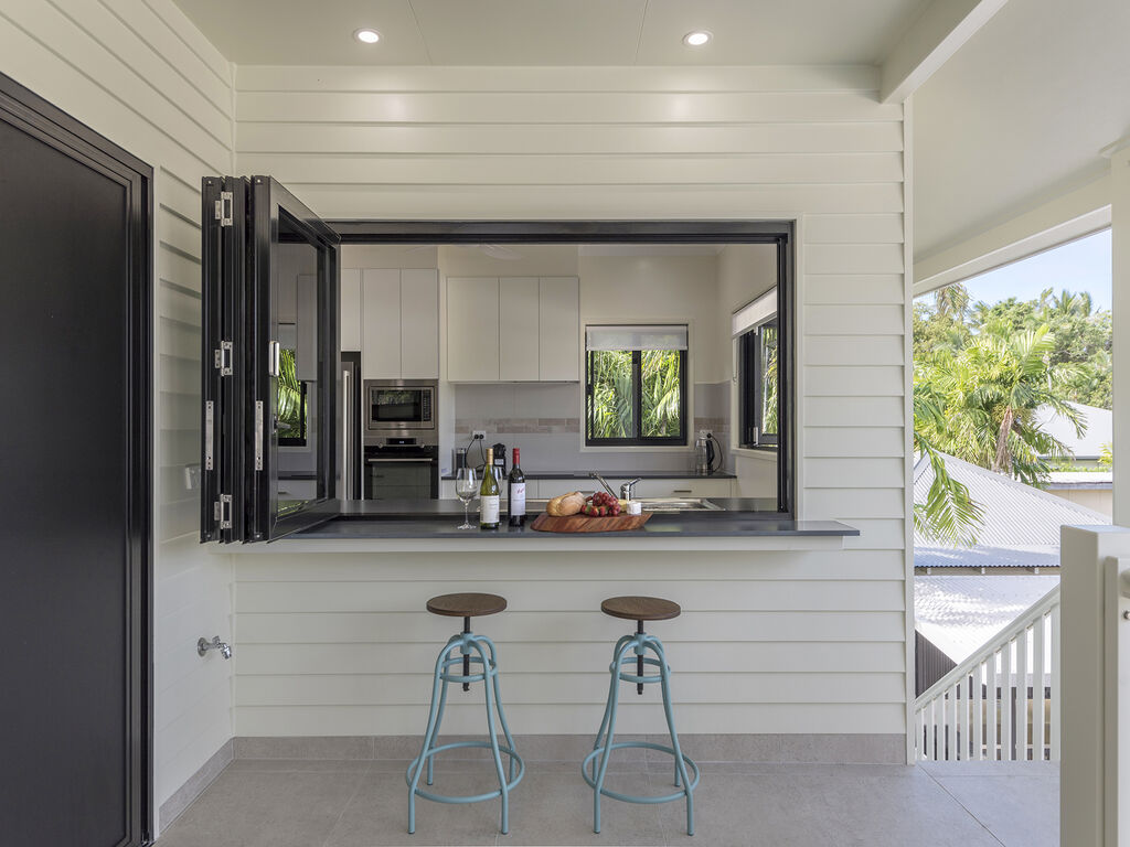 DOWNSTAIRS offers a private retreat of its own delivering a second lounge with kitchenette, full bathroom and a third bedroom (king or twin). Equipped with a PlayStation, a selection of board games and a private television area. This level works equally well as a dedicated space for children and teenagers, or a quieter secondary living area for adults. Families and multi-generational groups tell us this separation is the single detail that makes a Port Douglas holiday actually work.