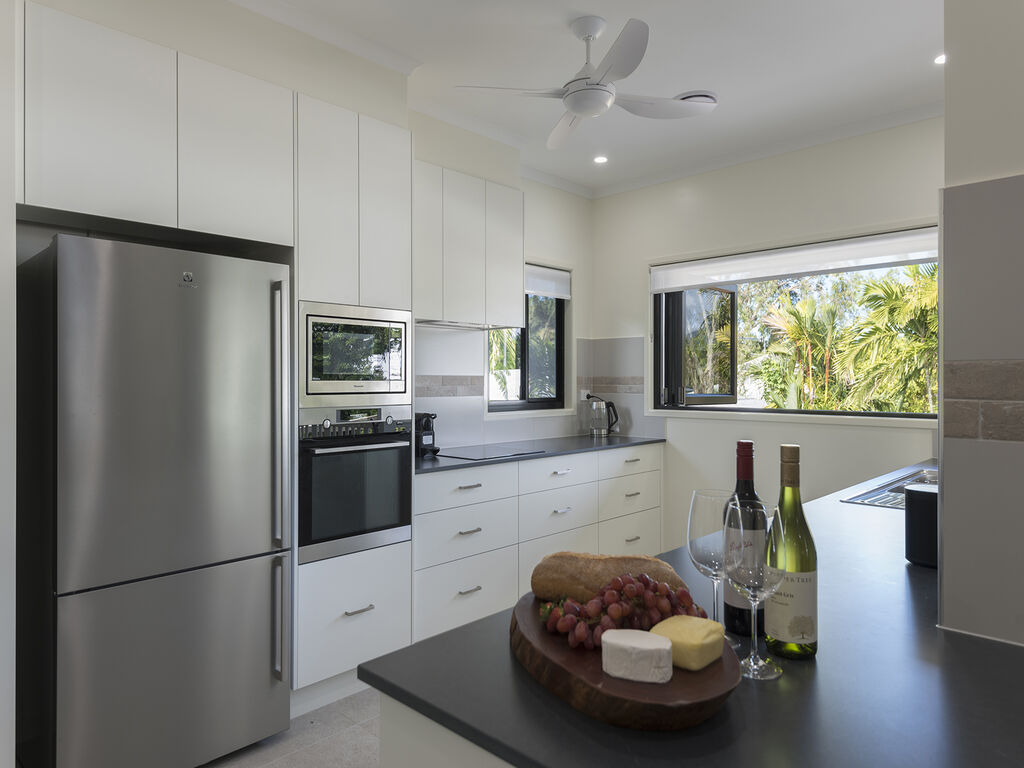 Spend your days lazing by the magnesium pool, walking the sands of Four Mile Beach or exploring the Great Barrier Reef and Daintree Rainforest. Take in the shops, cafés and restaurants of Macrossan Street returning each evening to your own tropical home in Paradise!