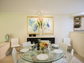 Villa 408 is designed for optimum privacy. On the lower level the open plan living, dining and kitchen space overlooks tranquil gardens out towards the mirage golf course. Glass sliding doors create a full open frontage and encompass the outdoor entertaining area, creating a delightful integration of inside and outside space. The two downstairs bedrooms share a bathroom, whilst on the upper level there is the master suite and 2nd upper level bedroom each having their own ensuite. The master suite has a wonderful outdoor balcony, perfect for enjoying your morning cup of coffee and a generous ensuite for couples with its own spa.
