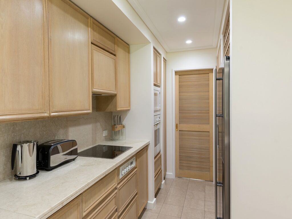 Filled with natural light, the open-plan layout includes a split-level living and dining area, creating two inviting spaces for relaxation and entertainment. The fully equipped kitchen is fitted with modern appliances and a coffee machine, perfect for easy holiday dining.