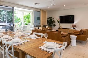 Sea La Vie has a quiet, stylish ambience with the privilege of only a pretty little park and tropical palm trees separating your doorstep and the sands of Four Mile Beach. This is the perfect property for relaxing and taking in the beachfront holiday vibes!